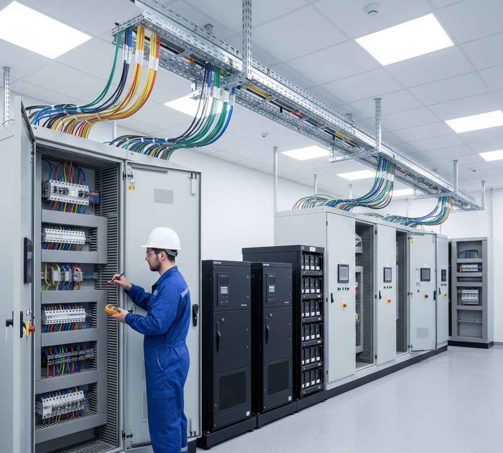 Cgm Electric ofrece soluciones especializadas en Sistemas AC y Gabinetes DC. Realizamos montaje de celdas, paneles de control, canalizaciones, UPS, grupos electrógenos y equipos industriales. En sistemas DC instalamos bancos de baterías, racks, breakers y paneles de distribución, garantizando instalaciones seguras, confiables y de alto rendimiento para todo tipo de infraestructura eléctrica.